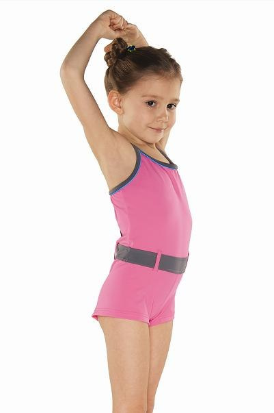 Jednoczęściowy damski strój kąpielowy.Kostium na ramiączka, z dołem typu szorty, z ozdobnym paseczkiem. Podwójne ramiączka z wypustką w kontrastowym kolorze zapewniają komfort noszenia. Strój z usztywnianymi miseczkami (możliwość wyjęcia) oraz ciekawym, sportowym tyłem. Produkowany w różnych wersjach kolorystycznych. Materiał: 80% poliamid, 20% elastan.