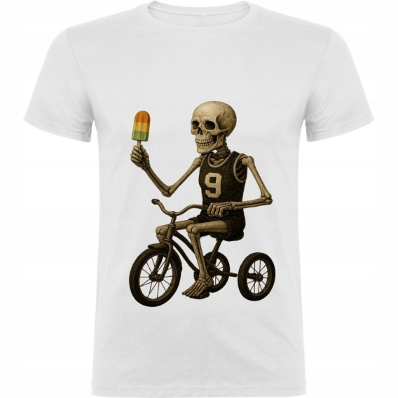 T-shirt z krótkim rękawem. Podwójna tkanina z dodatkiem elastanu przy kołnierzu. Brak szwów bocznych w wersji dla dorosłych, szwy boczne w wersji dziecięcej. Wzmocnione, kryte szwy przy karczku.