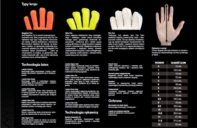 Wewn. Powierzchnia dłoni: 3 mm warstwa lateksowa Flexion Latex